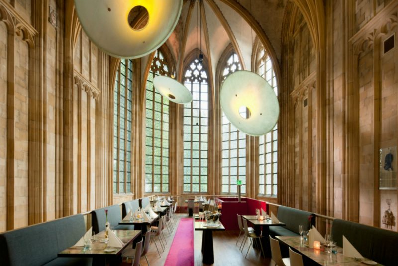 The entire Kruisherenhotel is, in fact, a former 15th century monastery surrounded by luxurious gardens. A glass elevator takes you directly from the hotel lobby straight to its own Gothic church. All around you, you can feel the austere Gothic contrasts with innovative contemporary design. Each of the 60 rooms has a unique look and feel created by Dutch designer Hank Vos, pitching the aged window panes and the original medieval frescoes on the walls and ceiling against one another. It is a controversial approach, but the combination under one roof of styles from different eras really works.