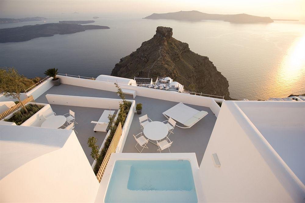 The Grace’s rooms and restaurant offer stupendous views over the Caldera and the rooms themselves are no less stupendous: filled with natural light and unobtrusive design concepts, they are spacious with luxurious linen accessories to add to the experience. Everything invites you to touch it (especially the flower tapestries) and take it home (No! Not allowed! And if you’re in any doubt, take a look at our article on what you can and cannot take away from the hotel when you check out). Many rooms offer a terrace with a small pool and jacuzzi. The suites come with steam rooms and the Villa suites have wine cellars and a personal spa centre – an outdoor sauna, a selection of wine and massage at your full disposal for the duration of your stay, any time, day or night.
