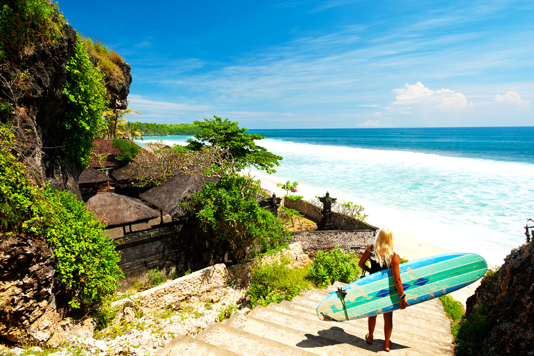 The best surfing beaches are said to be located on the Bukit peninsula on the sea-washed southern coastline.