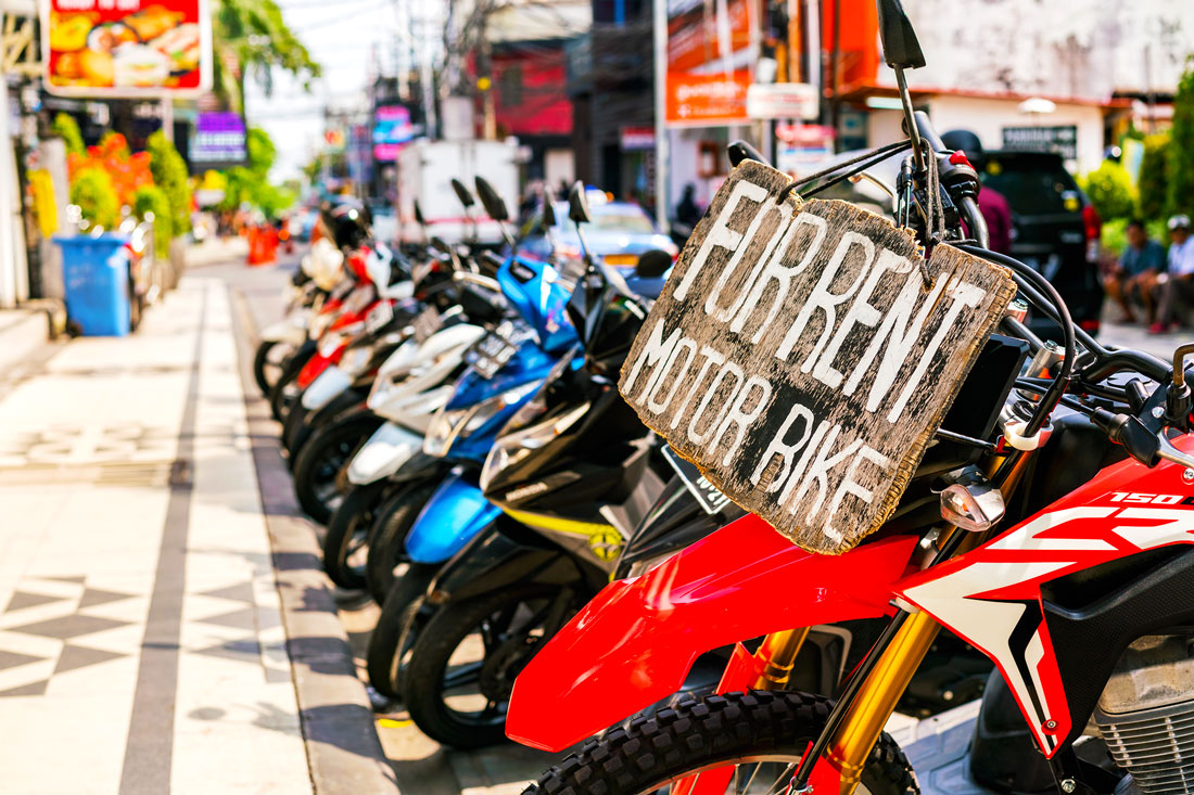 There is not much in the way of public transport on Bali, so people tend to move around on bikes which you can hire when you’re there. Hire costs start from 80,000 IDR (~$5.50/€5.00) per day.