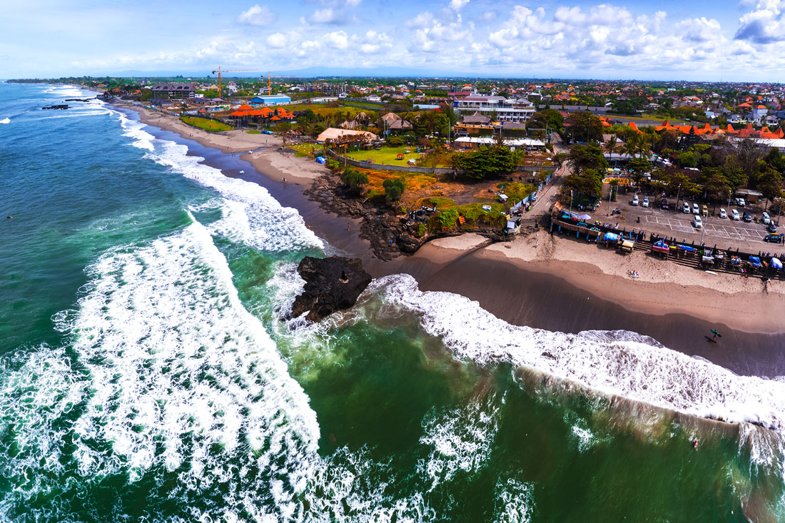 Batu Bolong is in Changu. If you are new to surfing, then then your school is likely to be here. The waves here are slow and long, but the seabed is not sandy but formed by a reef, but as it’s quite deep, it’s not dangerous. There is a lot of swimming involved as the line up is quite far out.