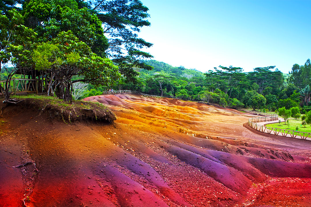 You get the impression that an artist poured the dye over the sand dunes here, coloring them red, purple, green, blue, yellow, and other shades. The secret is in the chemical composition of the sand and the local climate, which affected the way that the volcanic rock cooled off, which gave the soil these hues. This is one of the symbols of Mauritius.