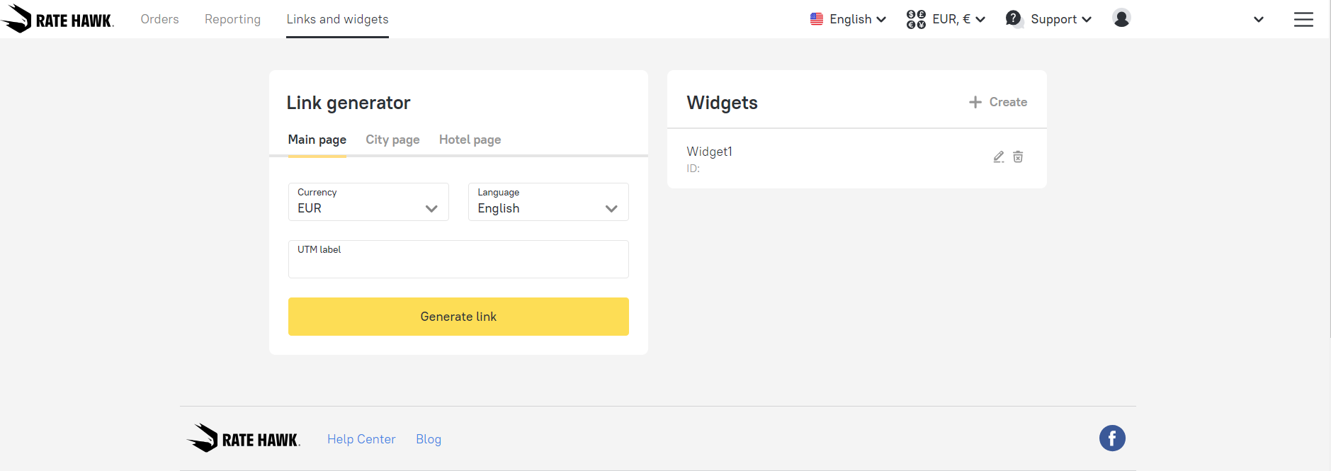 2. Log in to your account and navigate to the “Links and widgets” section. You can create referral links or widgets that drive bookings and generate commissions from there.