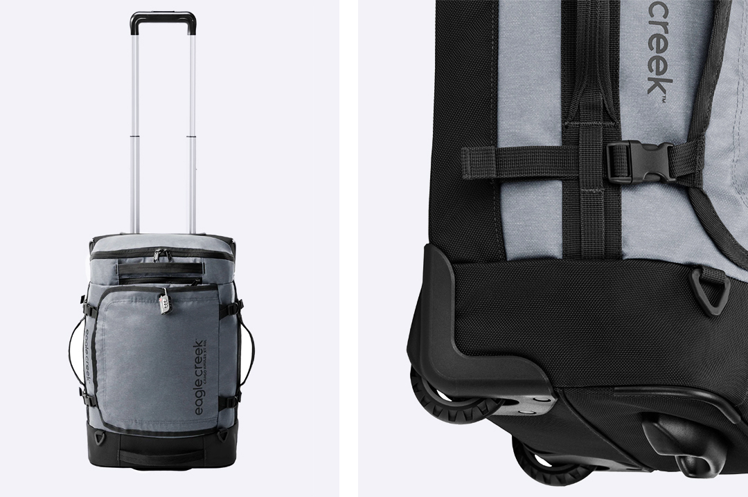 This carry-on is a great sustainable choice as it is made with recycled materials and has an ultra-tough construction with a structured back and bottom that you don’t see in comparable carry-ons, such as the Patagonia bag. Choose from four colors for the carry-on size with its internal adjustable compression, TPU-reinforced zipper pulls, and internal key clip. You can carry it in three different ways, including side carry, using the luggage handle, or wearing it as a backpack. It’s worth noting that the fact it only has two wheels means it won’t glide the same way a four-wheel spinner will on most surfaces.