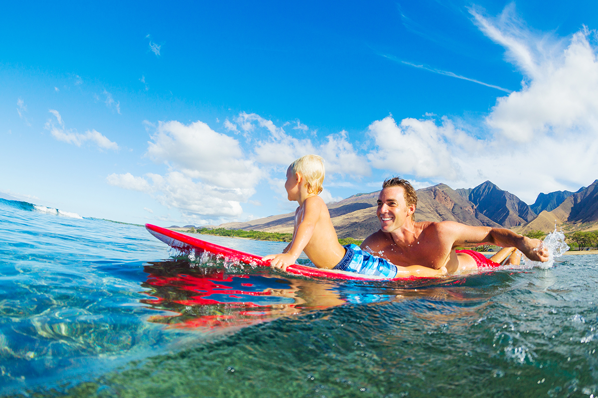 Although Hawaii is popular with surfers, there are plenty of calmer waves to be found, perfect for taking younger children into the water.