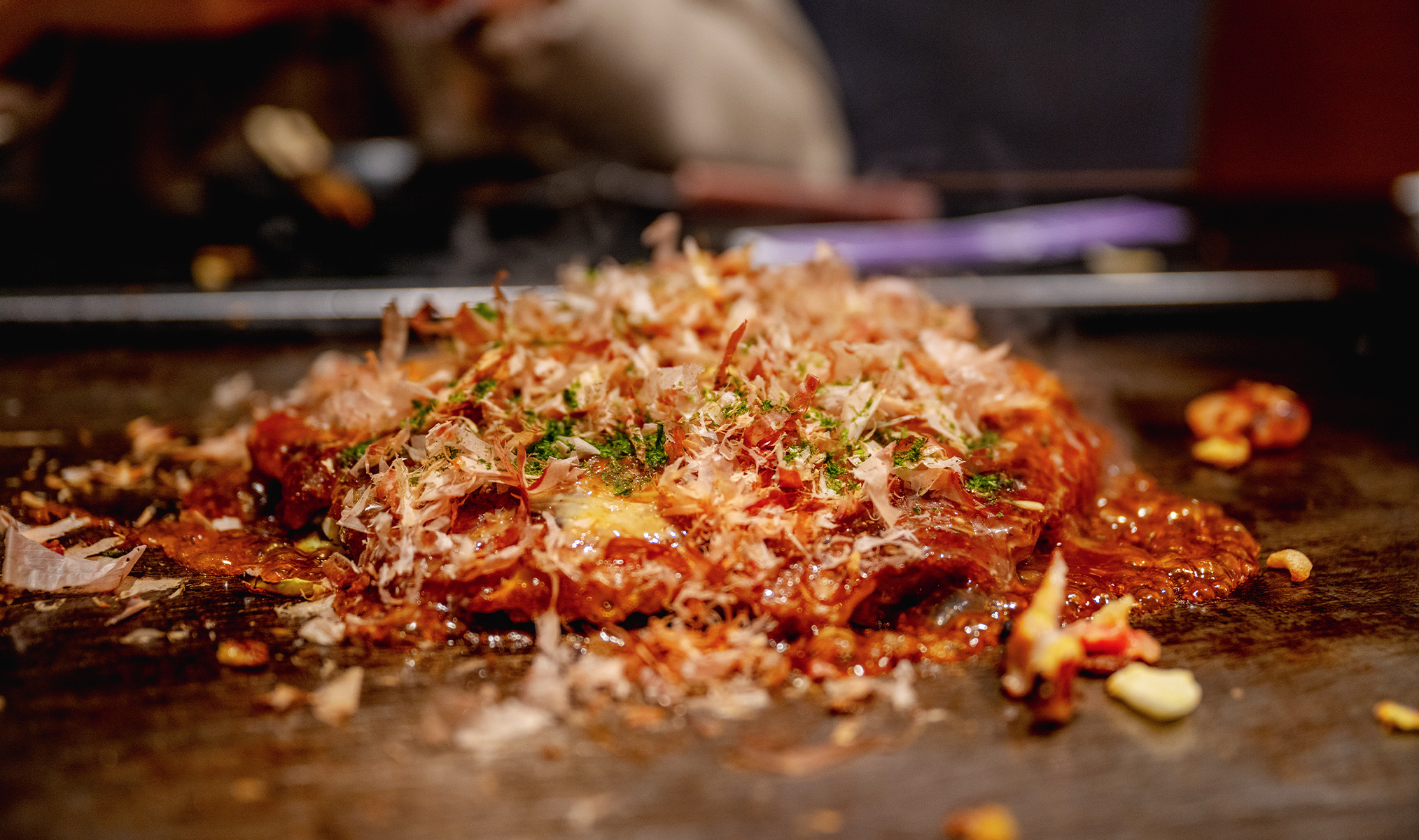 Okonomiyaki (お好み焼き) is a food that originates from Osaka. It is a type of “konamono”, the term used to describe foods primarily made of flour, which also includes kushikatsu and takoyaki. You’ll often see Okonomiyaki described in travel guides as being Japanese pizza, but this isn’t entirely accurate.