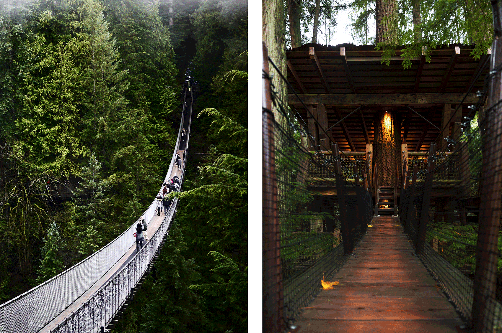 Even in the very center of town, close to the skyscrapers, there are many eye-catching green areas. But if you want to get even closer to nature, then head for the Capilano Suspension Bridge, the 70m high structure which spans the 140m distance across the river. A free shuttle will take you there – take the express which will pick you up in the city center and takes 20 minutes in one direct journey with no stops. You can pick up the bus at Canada Place next to the information kiosk. In summer, the first bus of the day leaves at 8am, and this is the best one to get if you want to avoid crowds at the bridge.