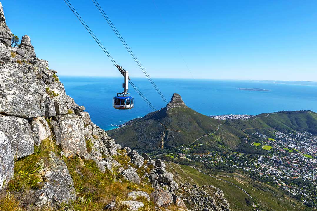 When the weather’s clear, you can also greatly enjoy climbing up one of the footpaths (which will take about three hours) or traveling up in the rapid funicular (R190 one way). From the top, you can take in the view of the city with its hilly relief and shrubby vegetation called fynbos. While to the sides you can see Devil’s Peak and Lion’s Head, the peaks on the neighboring mountains.