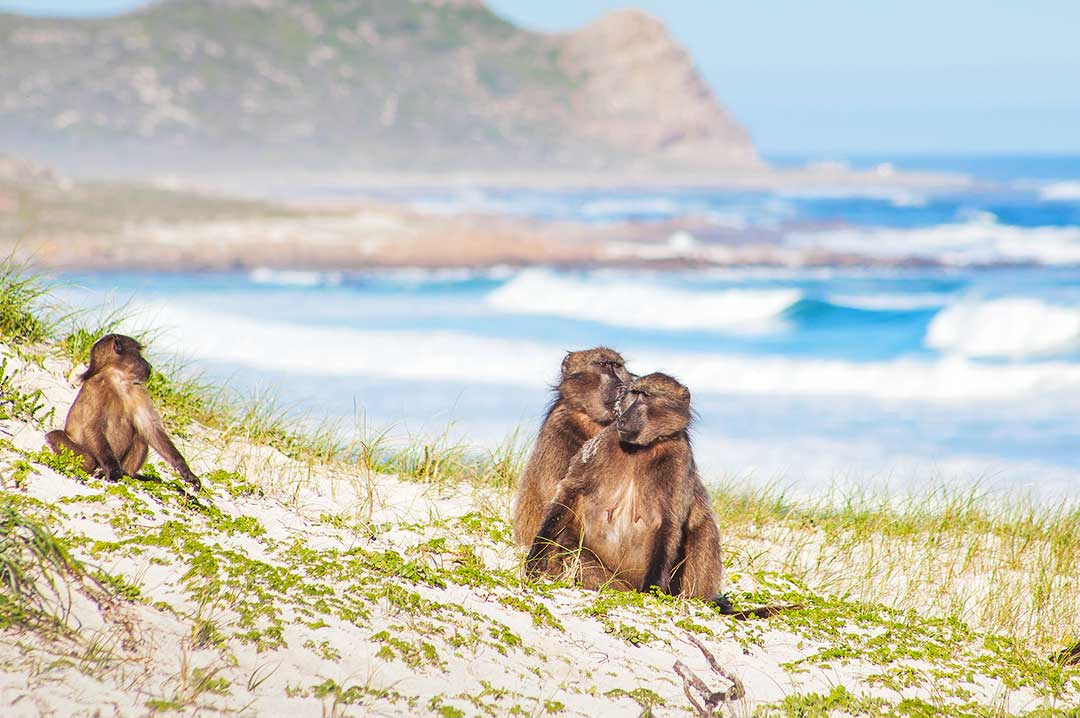 Moreover, the local kings live here — chacma baboons. From time to time they might emerge and appear on parked cars, but it’s not advisable to try, and stroke these cuddly beasts — these fluffy little animals are highly aggressive.
