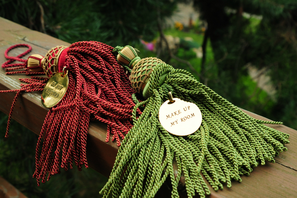 If there is nothing on the door handle the staff know that the guest is not to be disturbed. There’s also a bell by every door – if the guest doesn’t answer then no-one will enter the room. Next, the staff will call the phone in the room and if no-one answers, only then will they go in.