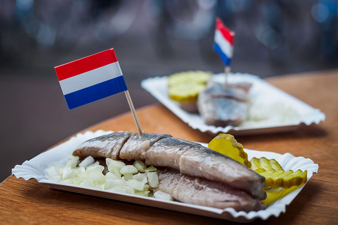 Herring is served in two ways. Firstly, cut into slices with pickled gherkins and raw onion. The second way is in a crusty bread roll. The locals call this a “herring sandwich” – “broodje haring” in Dutch.