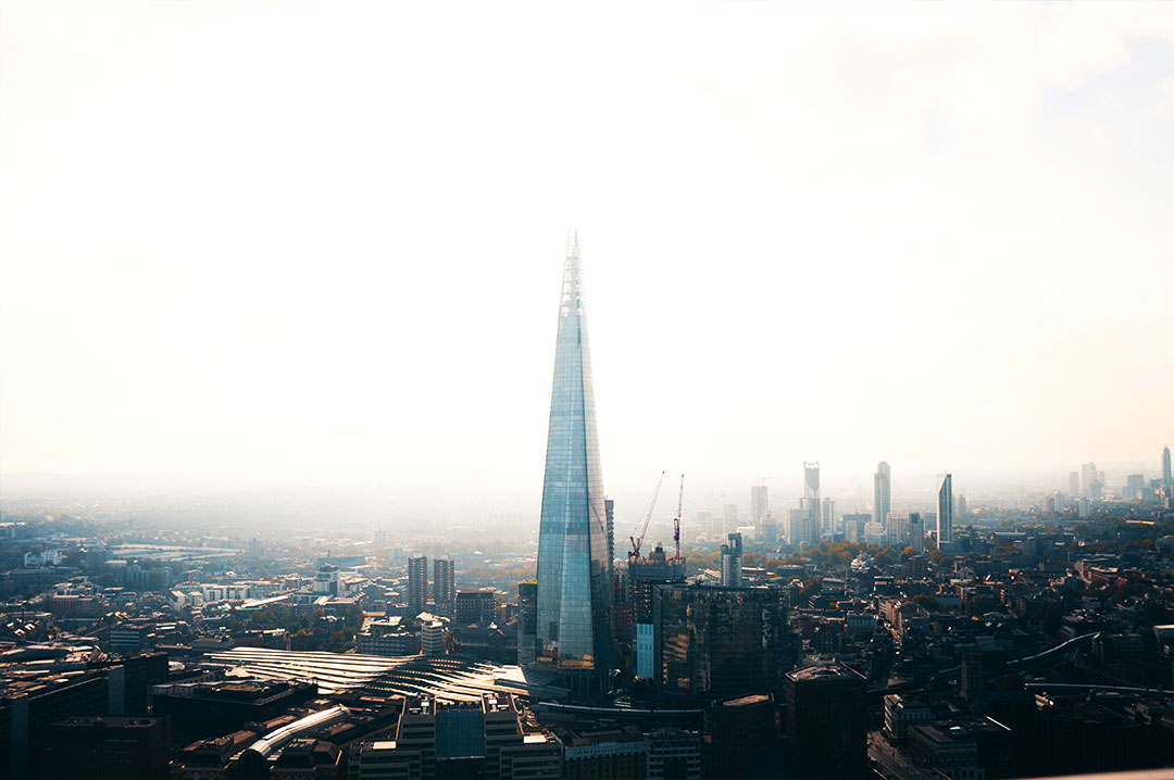 You can go to the recently opened Sky Garden viewing platform, located in the 20 Fenchurch skyscraper at the height of 160 meters. There is a panoramic view from here of Tower Bridge, the City Hall of London, and The Shard itself, which stands on the opposite bank of the River Thames.