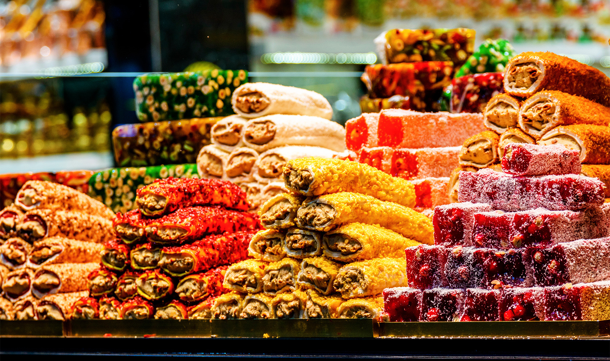 You will be offered a variety of sweets, dried fruits, and aromatic tea to try in almost every shop selling them. Photo by: Ihor Bondarenko / Shutterstock.com