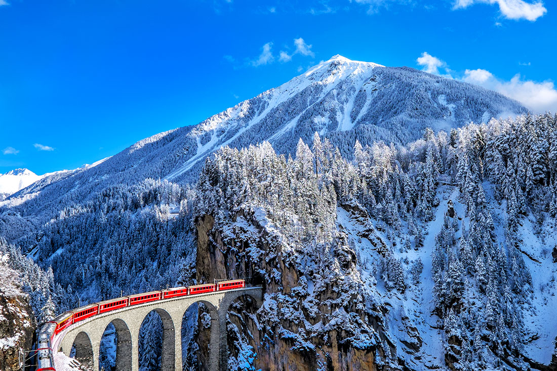 The train offers first- and second-class seats. Either is comfortable, and you will enjoy your journey through the Grisons nature park – somewhere you can only get to by train. You will have spectacular views of pristine lakes and the canton of Valais, views straight from a picture postcard.