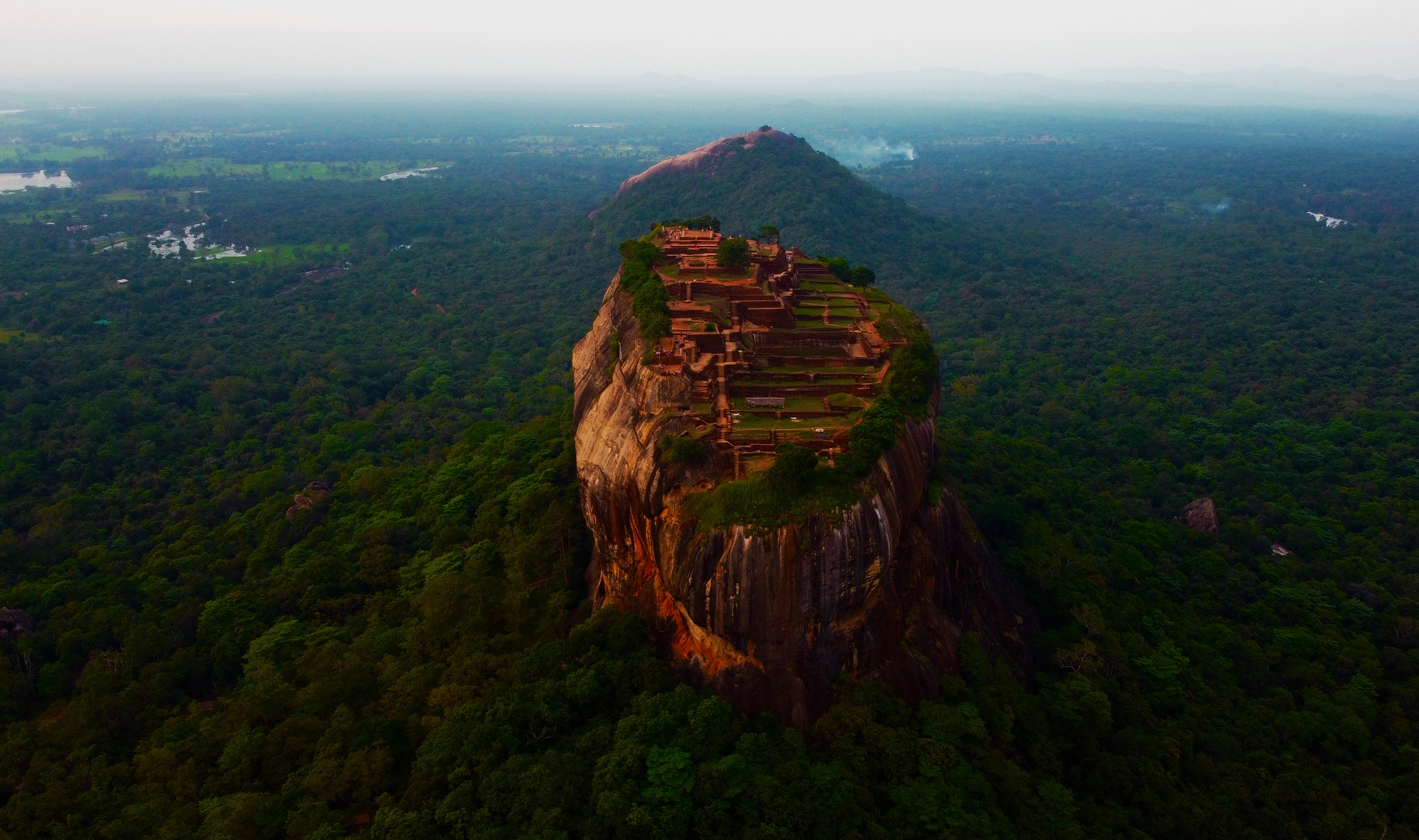 Visit Sigiriya — a 170 meter high cliff with a fortress at the top and impenetrable jungles at its base. Photo by Mike Swigunski on Unsplash