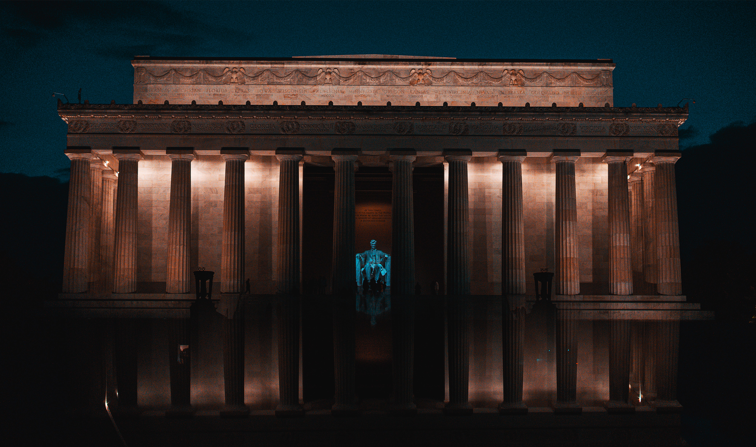 The Lincoln Memorial, a majestic building designed in the style of an ancient Greek temple with 36 columns and a huge statue of Abraham Lincoln. Photo by Chris Hardy on Unsplash