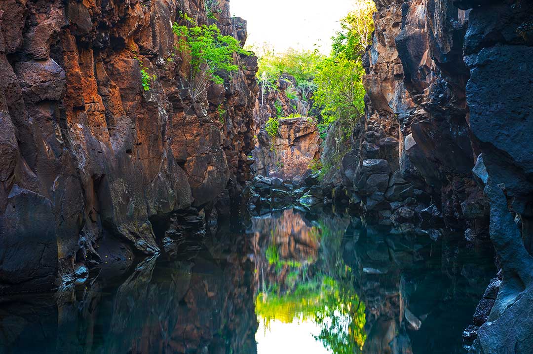 Having rested awhile, head towards another of Santa Cruz island’s attractions, Las Grietas, a grotto in the cliff face which is filled with fresh water. This is also free of charge to visit. To get there you cross salt lakes and wonderful deserted landscapes covered in enormous cacti.