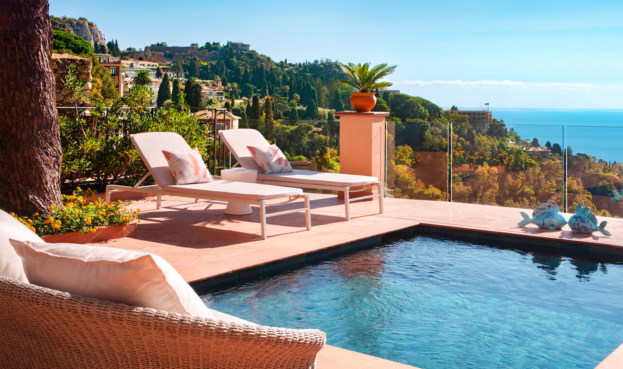 The hotel has been renovated in the liberty style with all the bedrooms boasting elegant designs, furnished with antiques and offering a view of an Ancient Greek theater, mountains or the sea. Some rooms have their own pool.