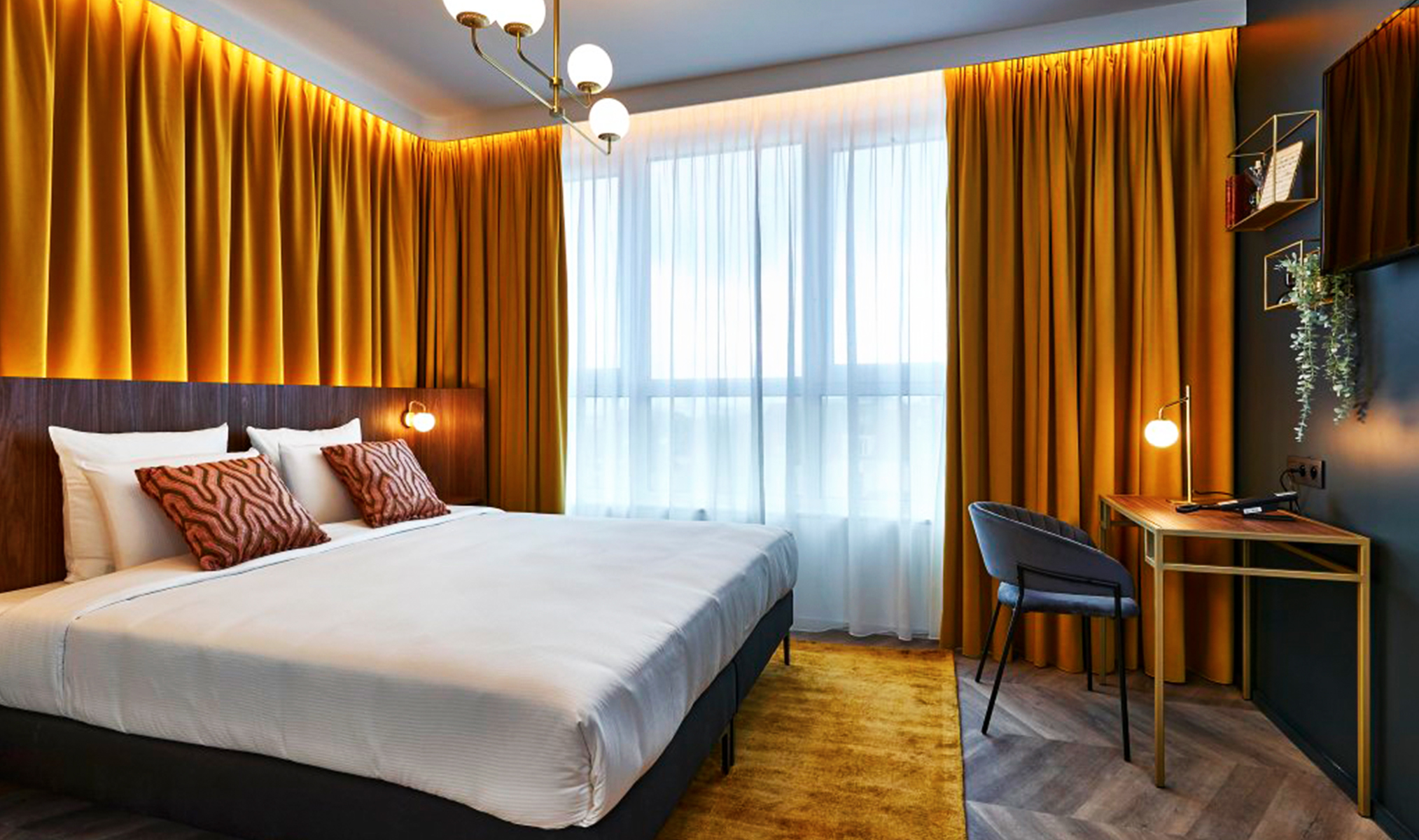 The hotel boasts a stylish, minimalist and elegant design; the rooms are furnished with all popular amenities and offer a fantastic view of the city. A separate category of ‘club’ rooms gives guests staying in them various perks: private access to an indoor swimming pool and a lounge, participation in events (morning yoga, for example), all-inclusive meals and other privileges.
