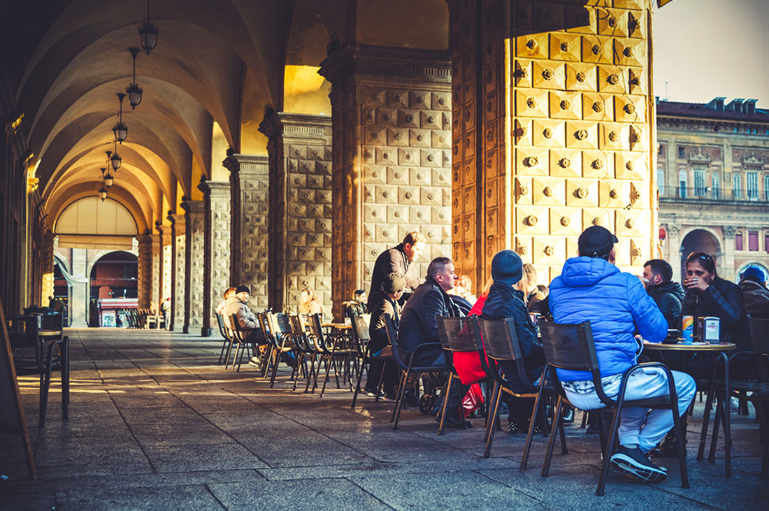 When it’s aperitivo time, go to Cafe Zamboni, where, for €8, you can enjoy a glass of wine or a cocktail, and the starters are really impressive. This is where you prepare yourself for where you will get to know the real Bolognese – in the local bars. Close by, at Via Zamboni 3, you’ll come across Bar Lime, which looks inconspicuous from the outside but offers great classic cocktails inside (from €4). Afterward, take a walk around the city. If it’s chilly, you can certainly warm up with more cocktails. Just let yourself be led by how you feel or by your new friends; you can always take one of the night buses back to the hotel (timetables here and here).