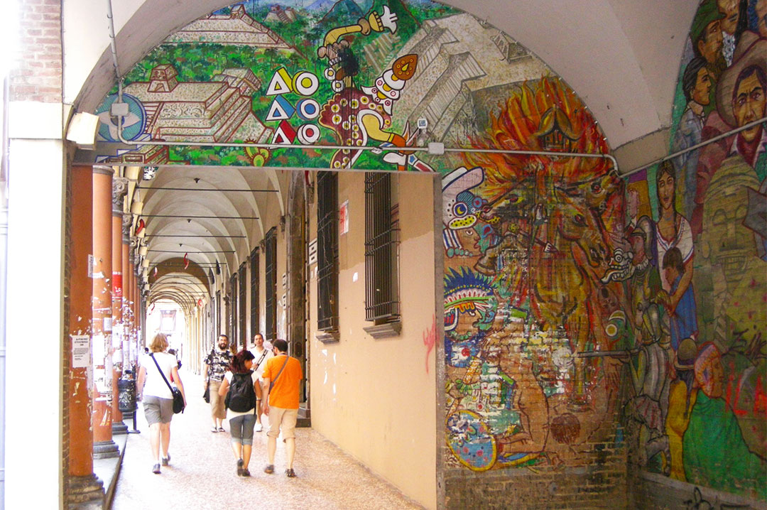 Here you will find places of cultural significance, for example, Bologna Municipal Theater and Museo di Palazzo Poggi (a museum of medicine). The students decided that the local palazzos could do with a bit of paint and have spent several decades covering the buildings’ walls with graffiti works.