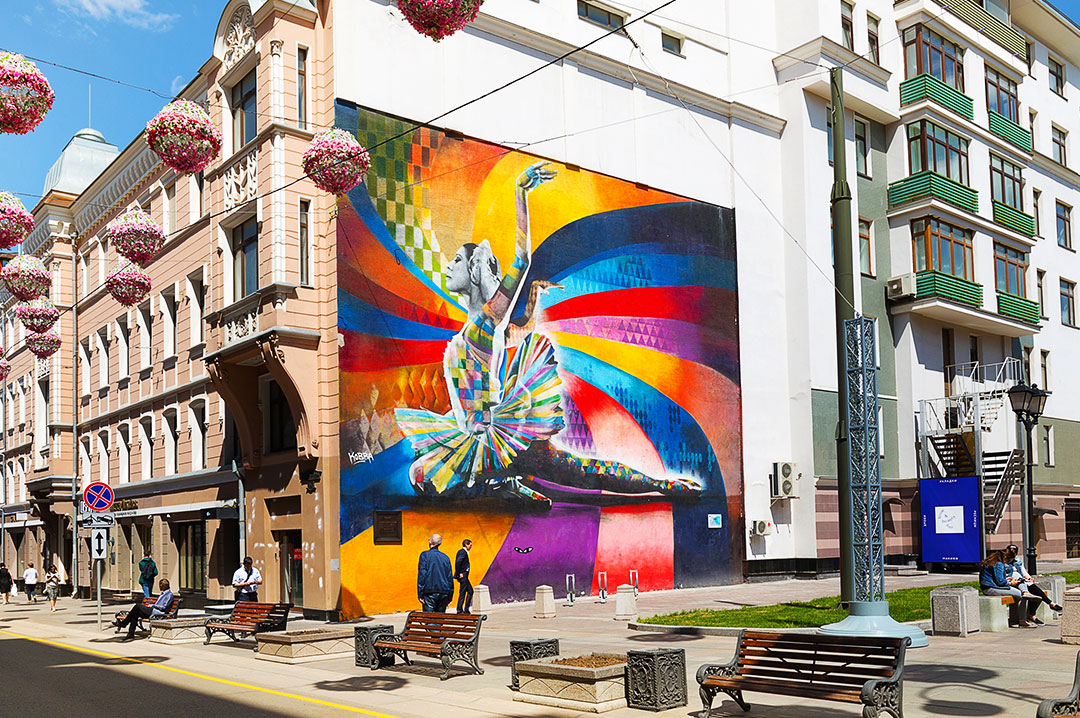 - How to get there: The graffiti is located at Bolshaya Dmitrovka 16/1 (5 minutes’ walk from Teatralnaya subway station).