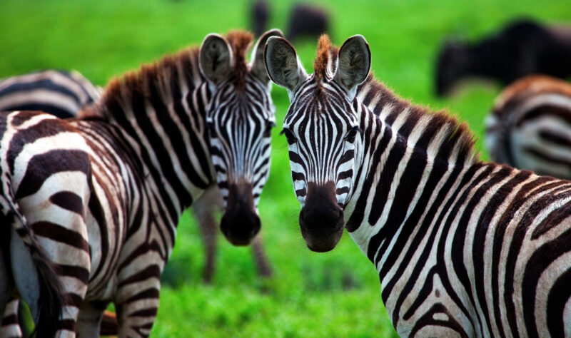 Serengeti National Park is a World Heritage Site famous for its zebra and wildebeest.