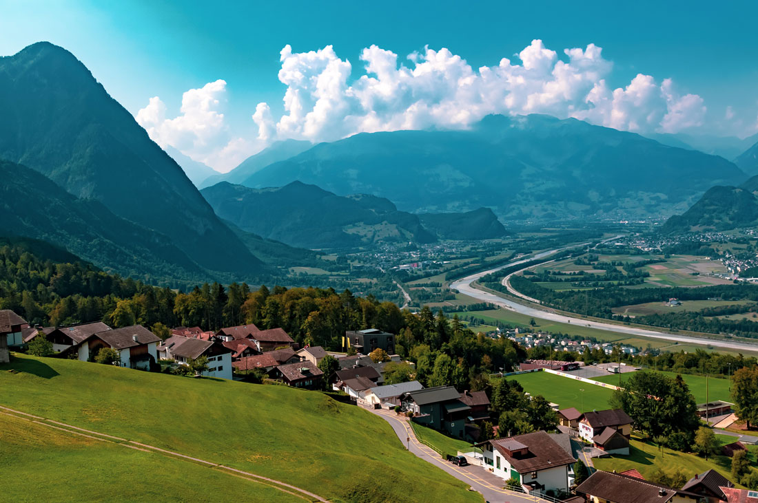 Liechtenstein and Switzerland are very similar in appearance: the same colored little houses with murals, green meadows and the Alps.